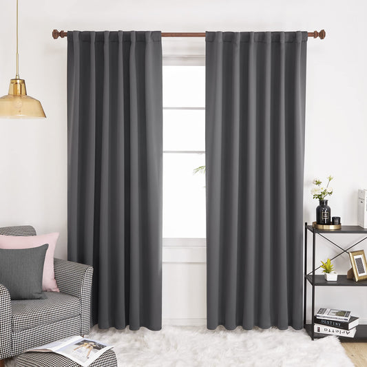 INtex CURTAINS HOUSE Blackout Curtains with Tiebacks - Thermal Insulated, Light Blocking and Noise Reducing Grommet Curtain Drapes for Bedroom and Living Room, Set of 2 Panels,