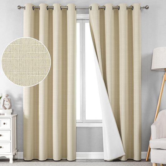 INtex Curtains Linen 100% Blackout Curtains for Bedroom Living Room Thermal Insulated Fabric -Room Darkening -Steel Grommet Window Curtains -1 Piece