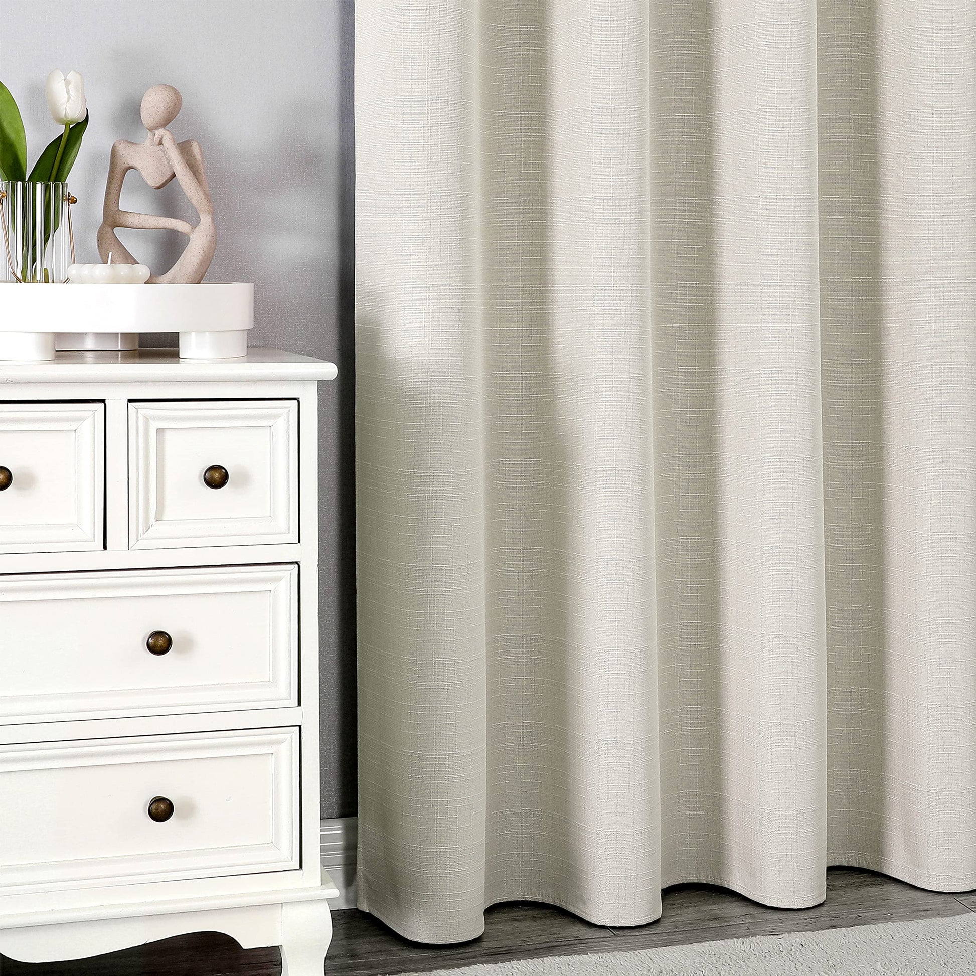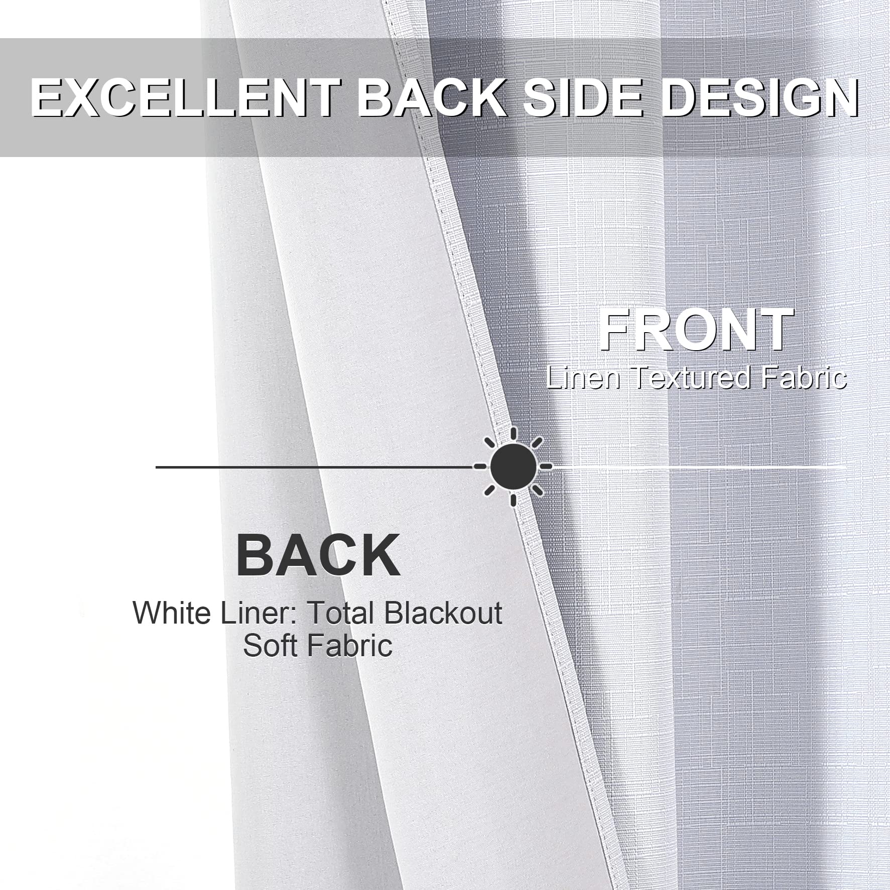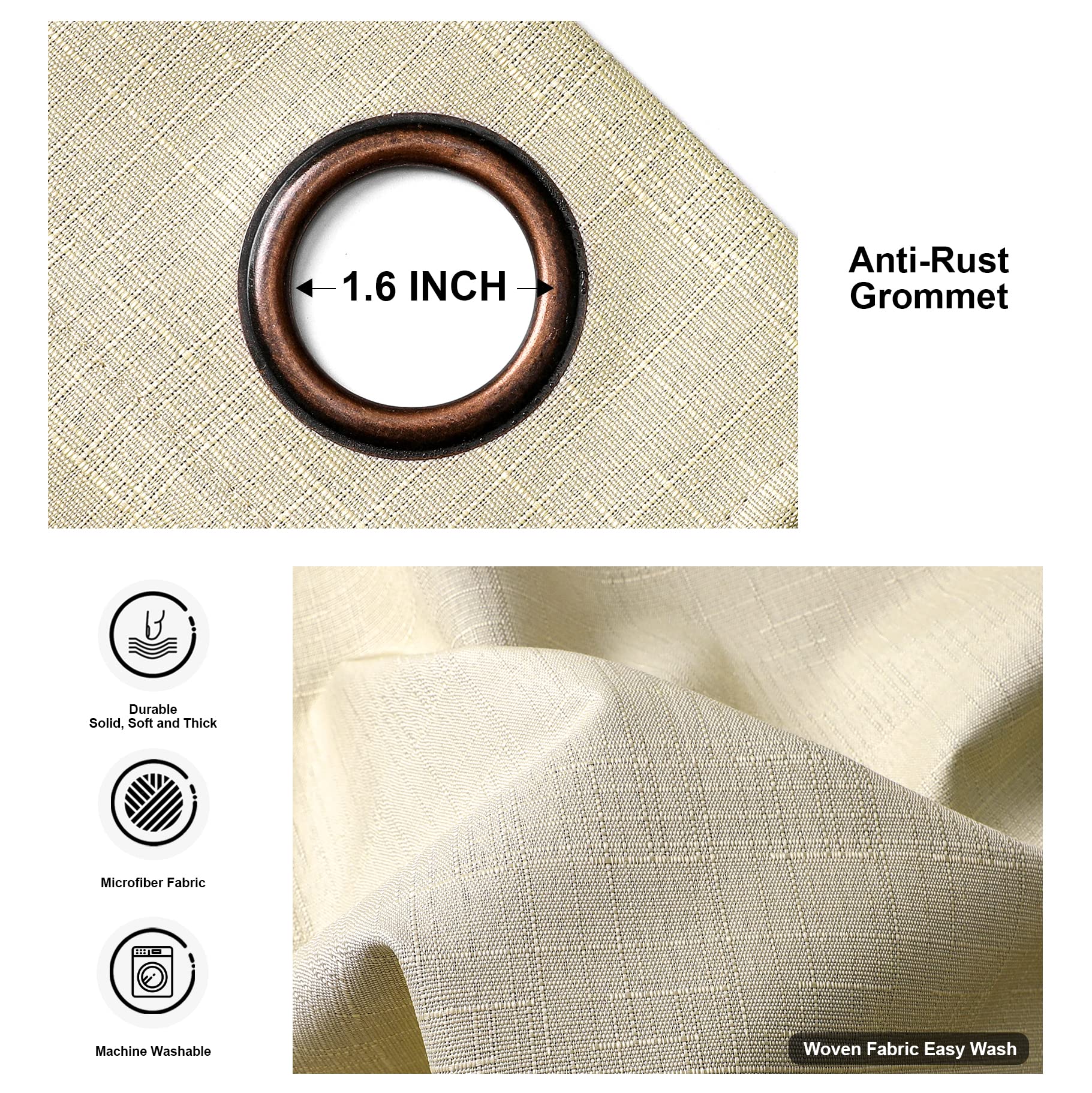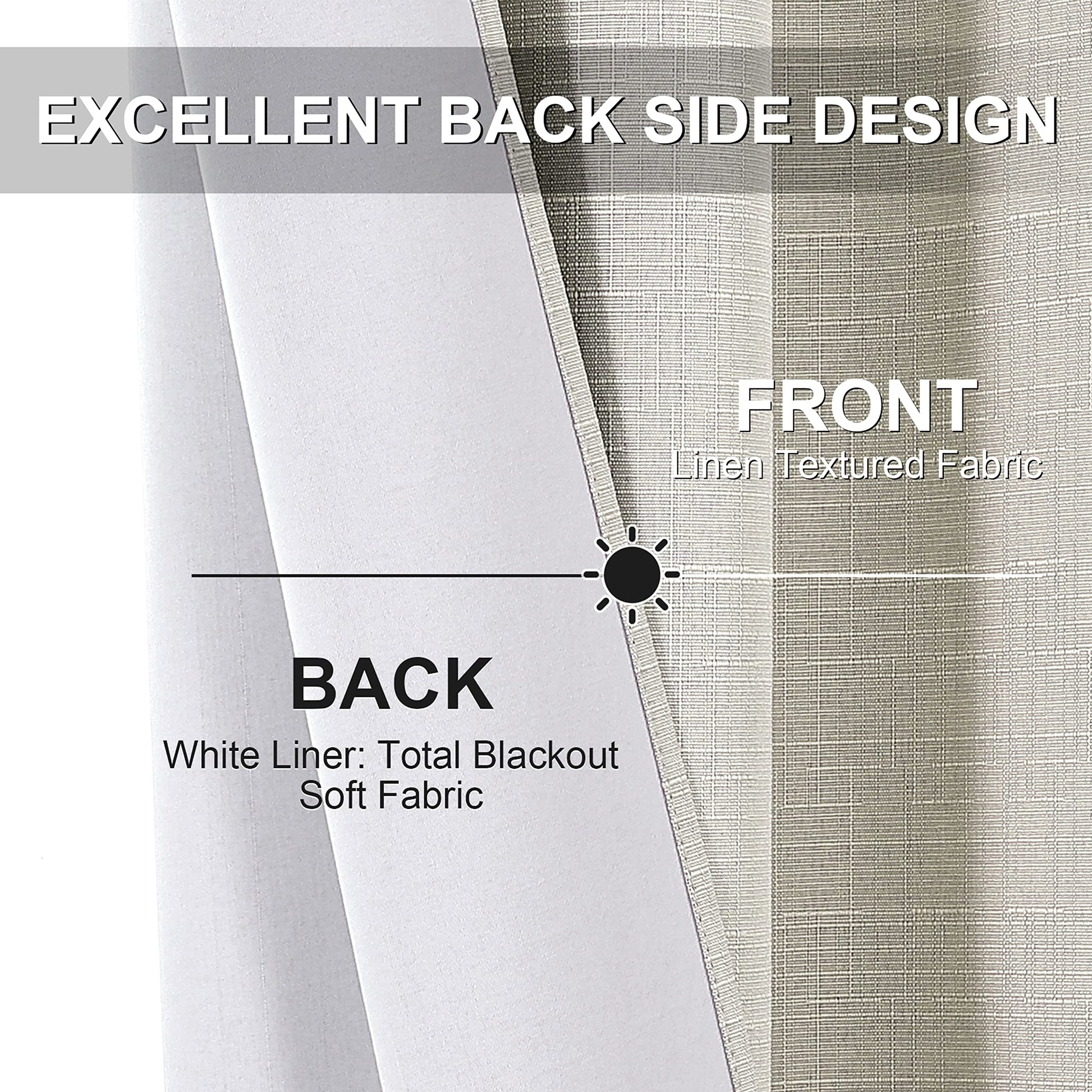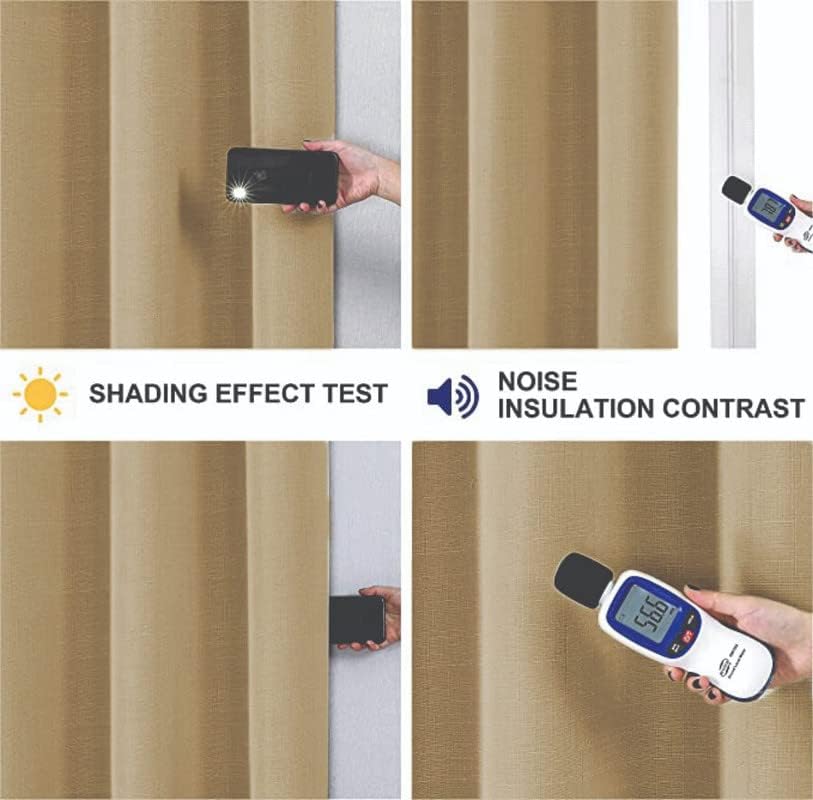 ستائر إنتكس الكتانية 100% ستائر معتمة لغرفة النوم وغرفة المعيشة من القماش العازل حرارياً - تعتيم الغرفة - ستائر نافذة بحلقات فولاذية - قطعة واحدة