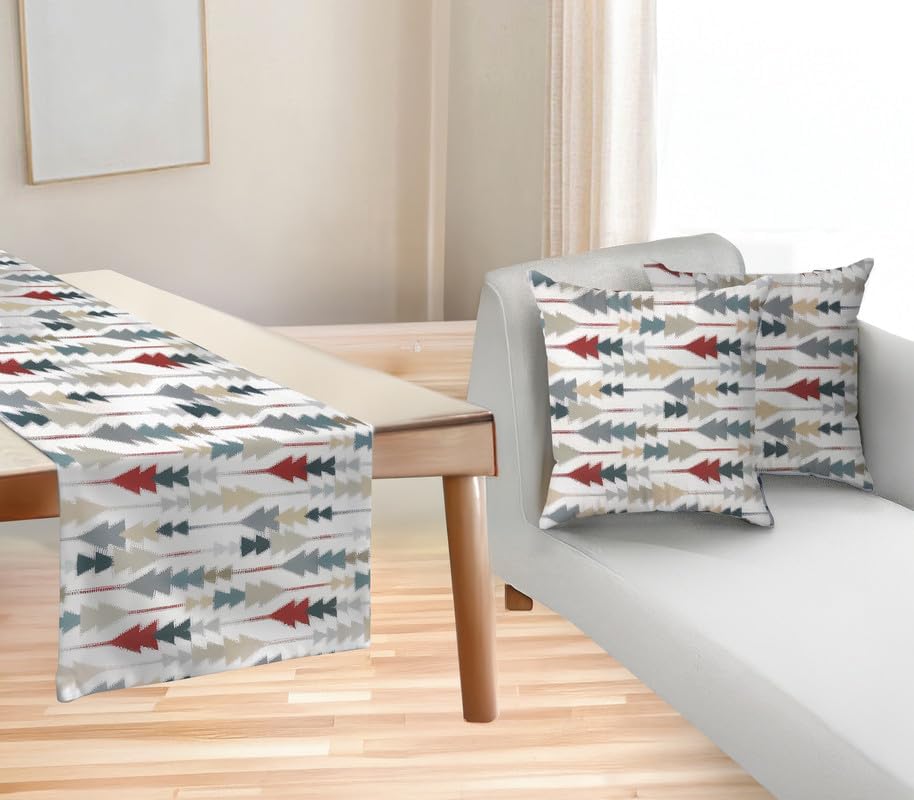 طقم صوفيا إليجانس من 3 قطع - مفرش طاولة مخملي من الكتان 45×135 سم + 2 غطاء وسادة - عنابي × بيج × رمادي