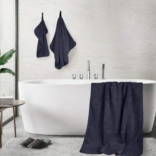 INtex HOME 4-Piece Towel Set, 100% Cotton ? Includes 1 Bath Towel 140 cm x 70 cm, 1 Hand Towel 100 cm x 50 cm, 2 Washcloths 30 cm x 30 cm, Quick Dry, Super Soft, Highly Absorbent, No Fade, Black
