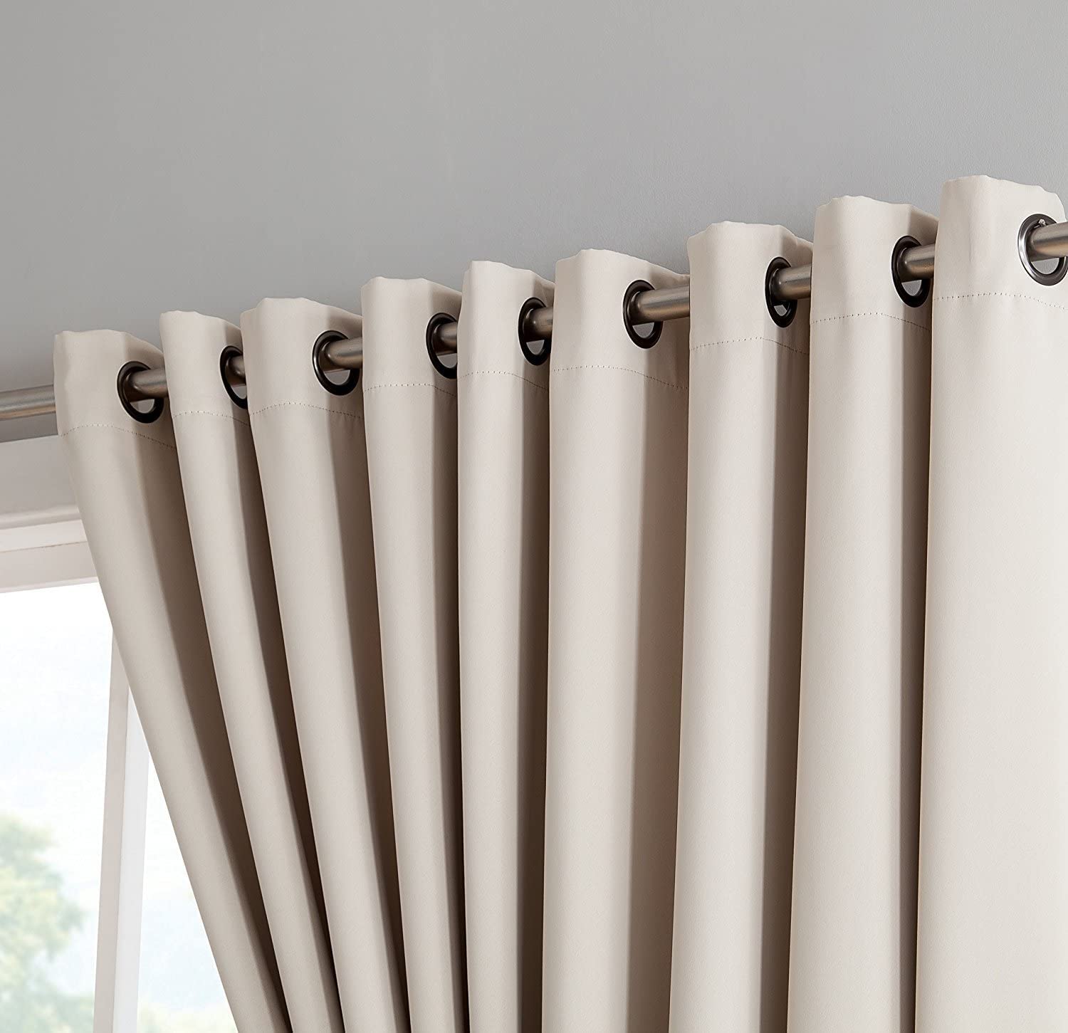 ستائر حجب الضوء الفاخرة من انتكس كارتنز هاوس، من قماش عازل للحرارة لتعتيم الغرفة مع حلقات للتثبيت من الستيل، مقاس 150 سم عرض × 250 سم طول، بلون اوف وايت ، سادة، من انتكس بيت الستائر