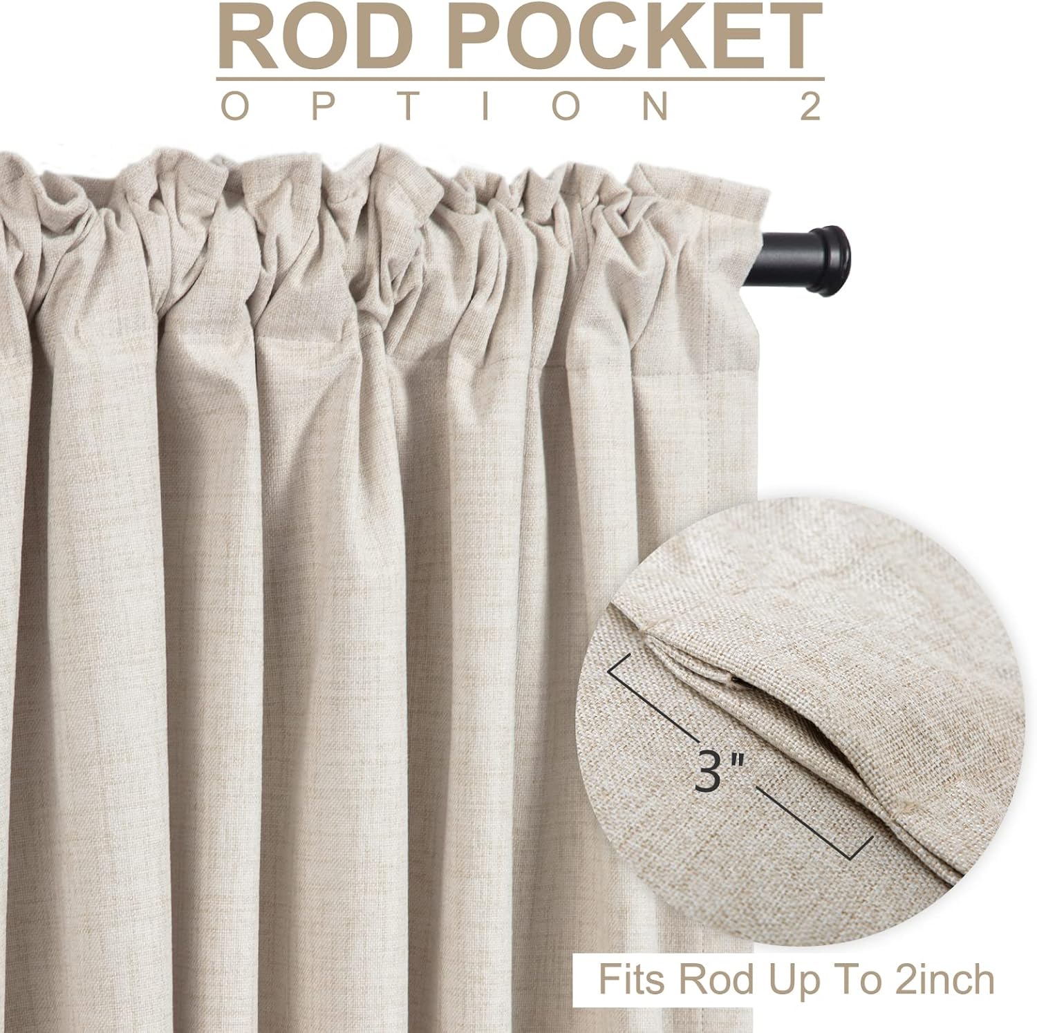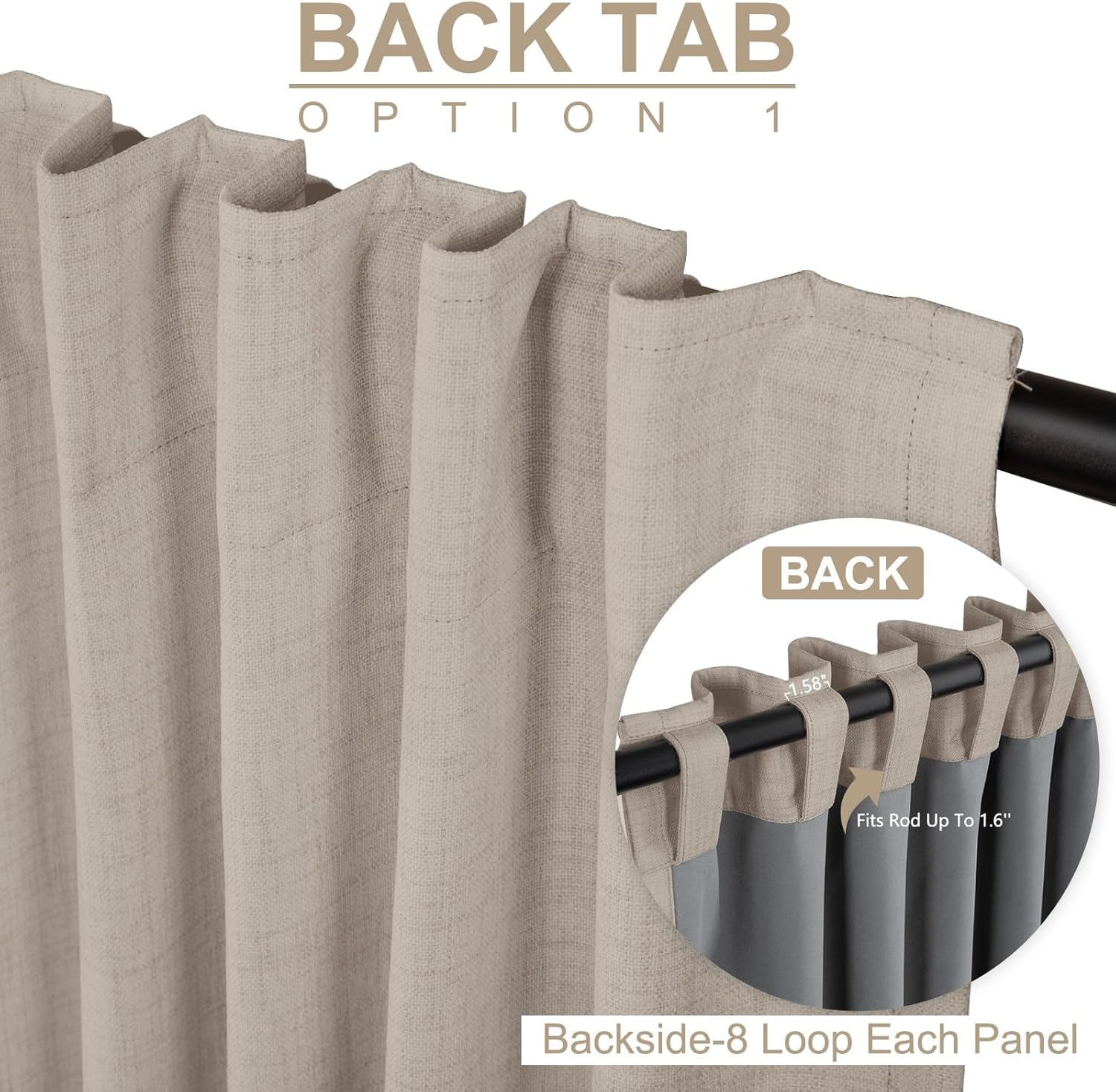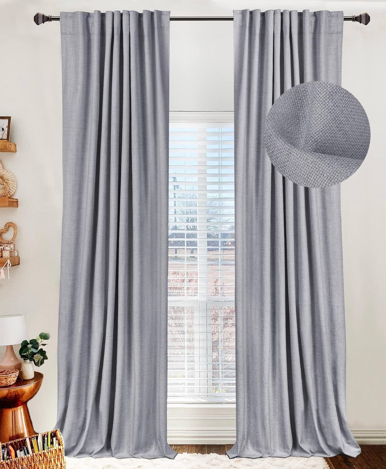 - Linen Look Fabric: These curtains&drapes are crafted from soft and draped textured linen look fabric with 100% blackout coating. Linen blackout curtains will bring more vintage and classic visual look, Softness and drape blackout curtains create a relaxed and fashionable home environment.