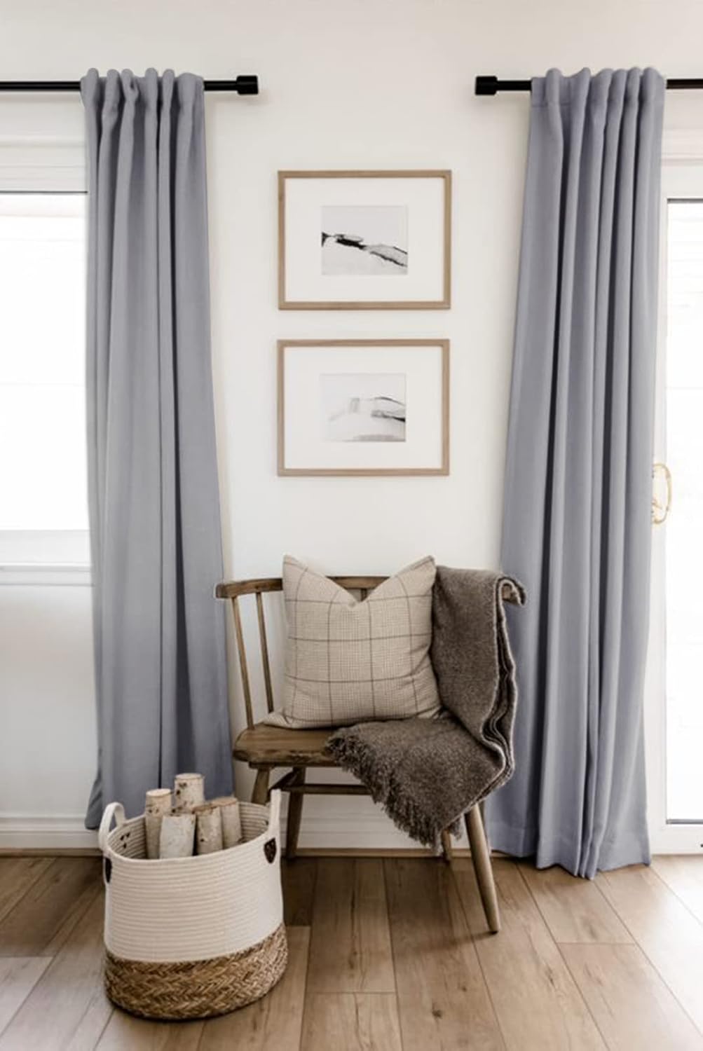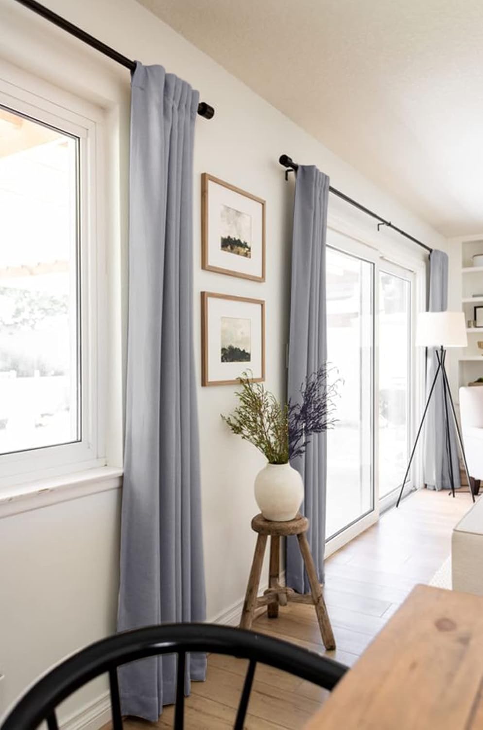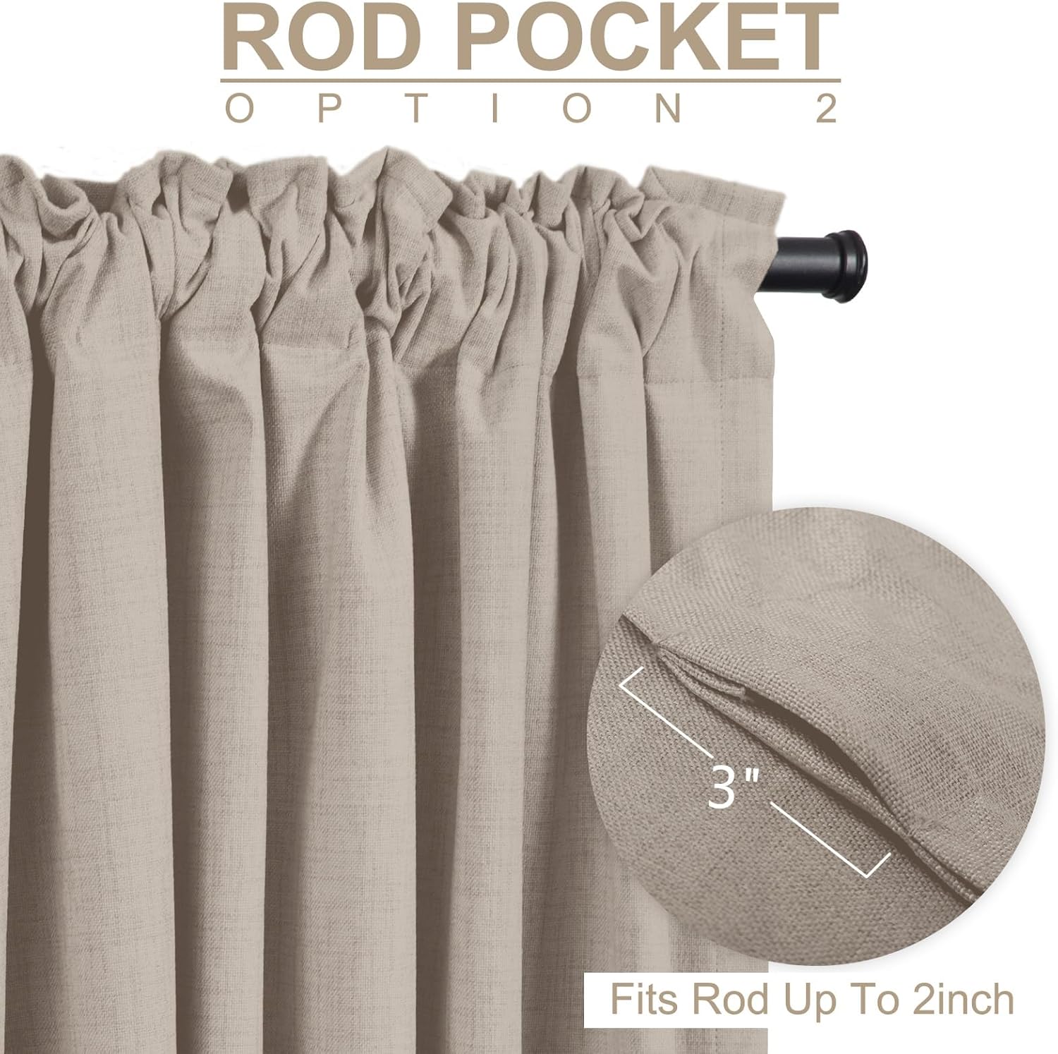 - Linen Look Fabric: These curtains&drapes are crafted from soft and draped textured linen look fabric with 100% blackout coating. Linen blackout curtains will bring more vintage and classic visual look, Softness and drape blackout curtains create a relaxed and fashionable home environment.
