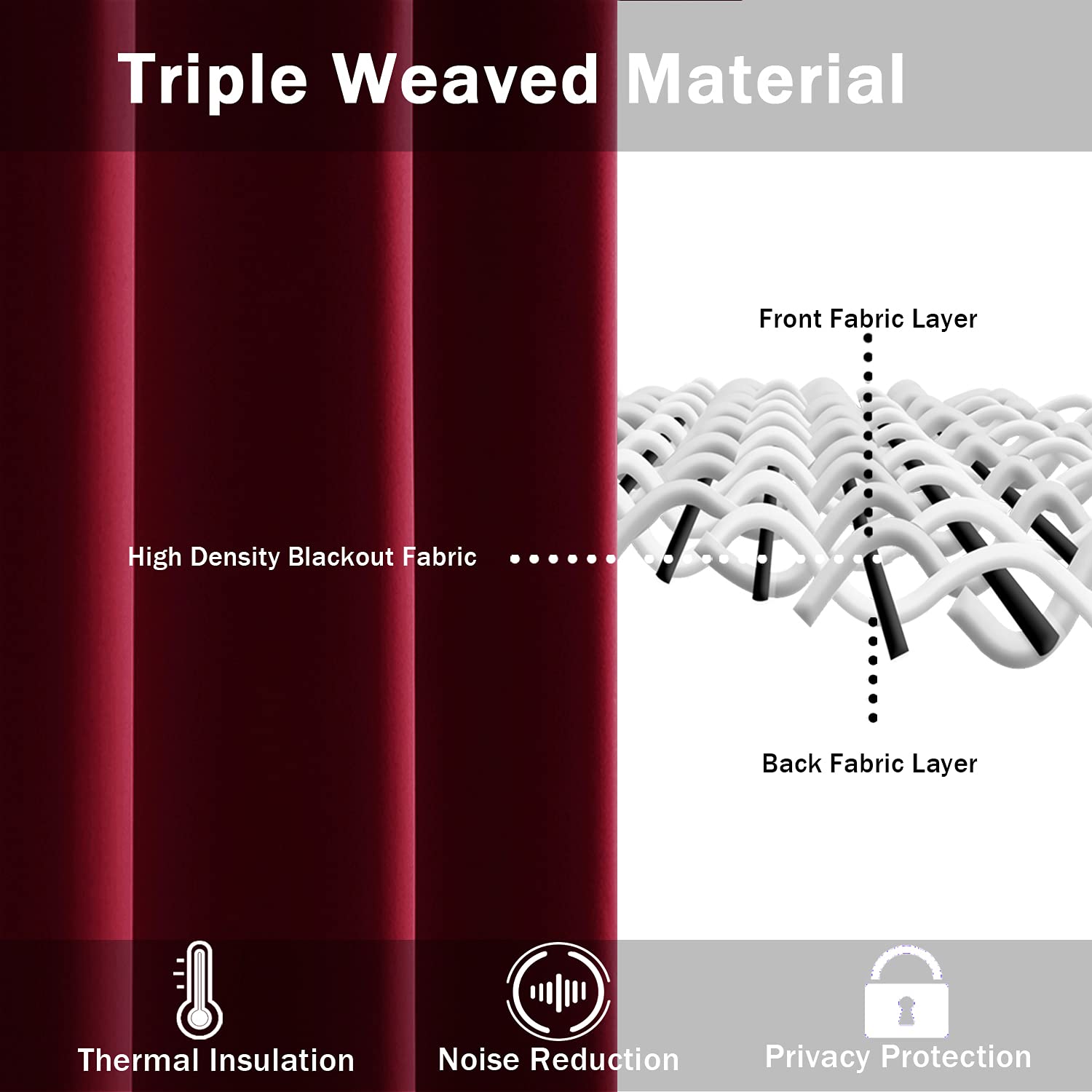 Blackout curtains block 85% of sun rays. Thermal Curtains Triple layer helps create an energy barrier against extreme heat or cold Effective at keeping out cold in winter and blocking out the heat in summer, thermal insulated properties make them ideal for all seasons. Reduce noise and isolate your room from heat. Used for living rooms and bed rooms. Modern design rich steel grommets makes your curtain panel easy to close and open. Luxury fabric softener and comfortable. Many sizes Easy to clean with traditional methods of cleaning.