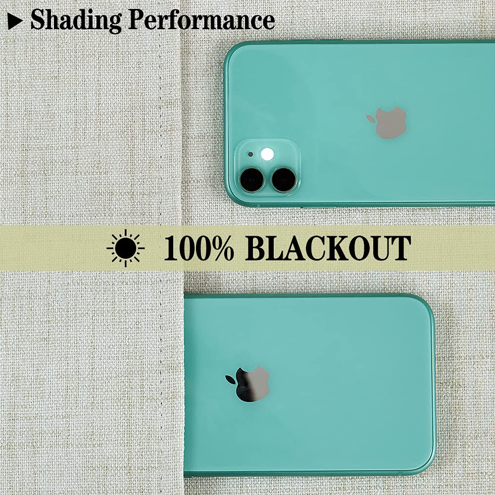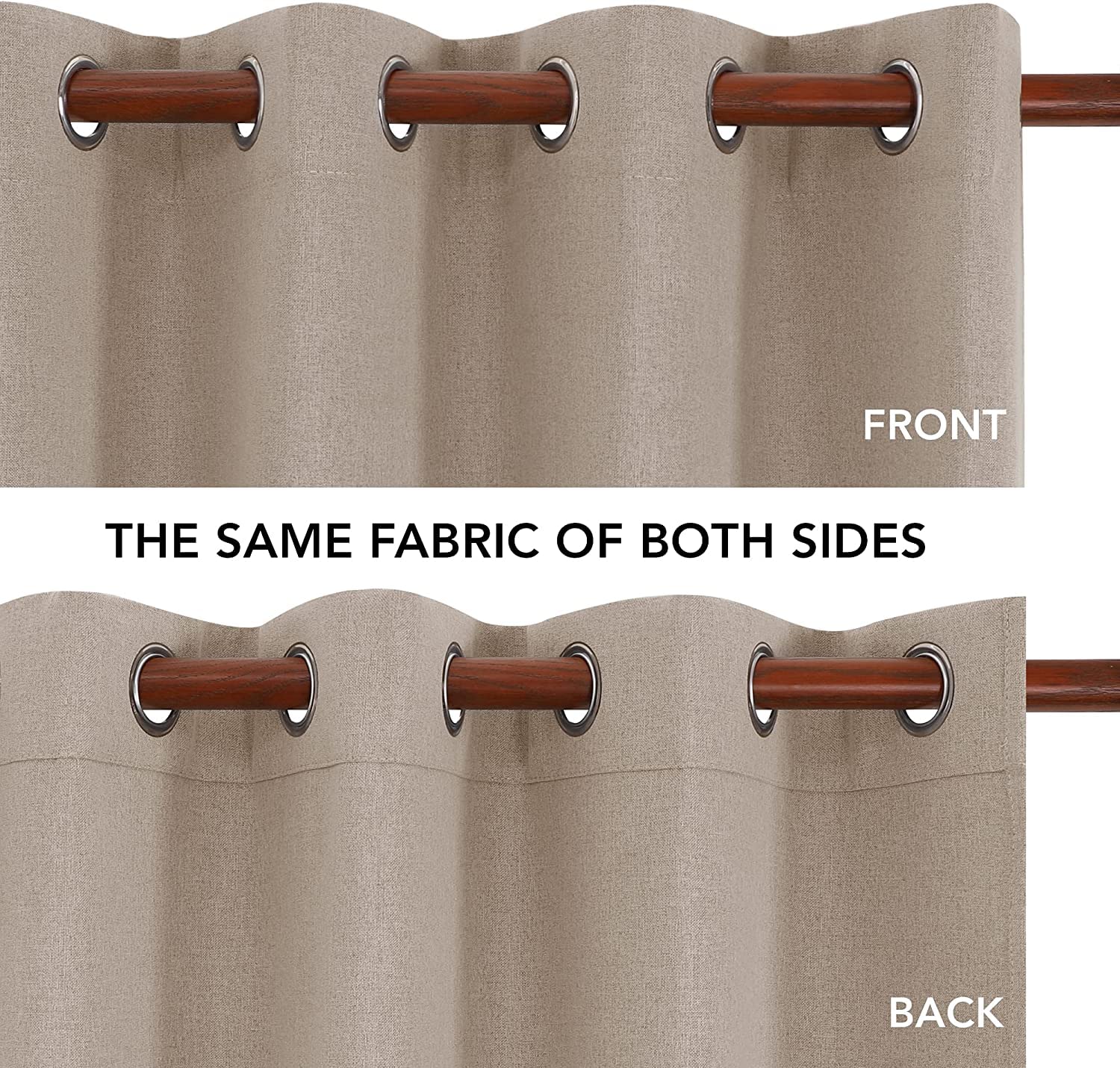 PRODUCT INFO: 100% blackout curtains. Both sides of the curtains are the same exquisite linen fabric. Each package contains 1 panel. DESIGN and TEXTURE: The curtains are made by faux linen fabric, simple, natural, and durable. Same color on both sides makes the curtain panel look good from other side of the window as well. Each curtain panel has 8 silver metal grommets on top. The design of silver grommet, creates casual elegance for your house, which makes the curtains easy to install and slide. FUNCTION CURTAINS: Super heavy and soft blackout curtain panels are very upmarket. Besides, light blocking, thermal insulated, soundproof, Fade-resistant, energy-efficient. Thread trimmed and wrinkle-free, both sides are the same color. WISE BUDGET: Protect your furniture and floor exposed to the sun, while still helping you save money on heating and cooling your home. The greatest benefit is to bring you a good night's sleep, making you full of energy every day. EASY CARE: For convenience, these curtains are machine washable. Wash below 30C on gentle cycle. Do not tumble dry, low iron. Do not use fabric softener to protect the fabric.