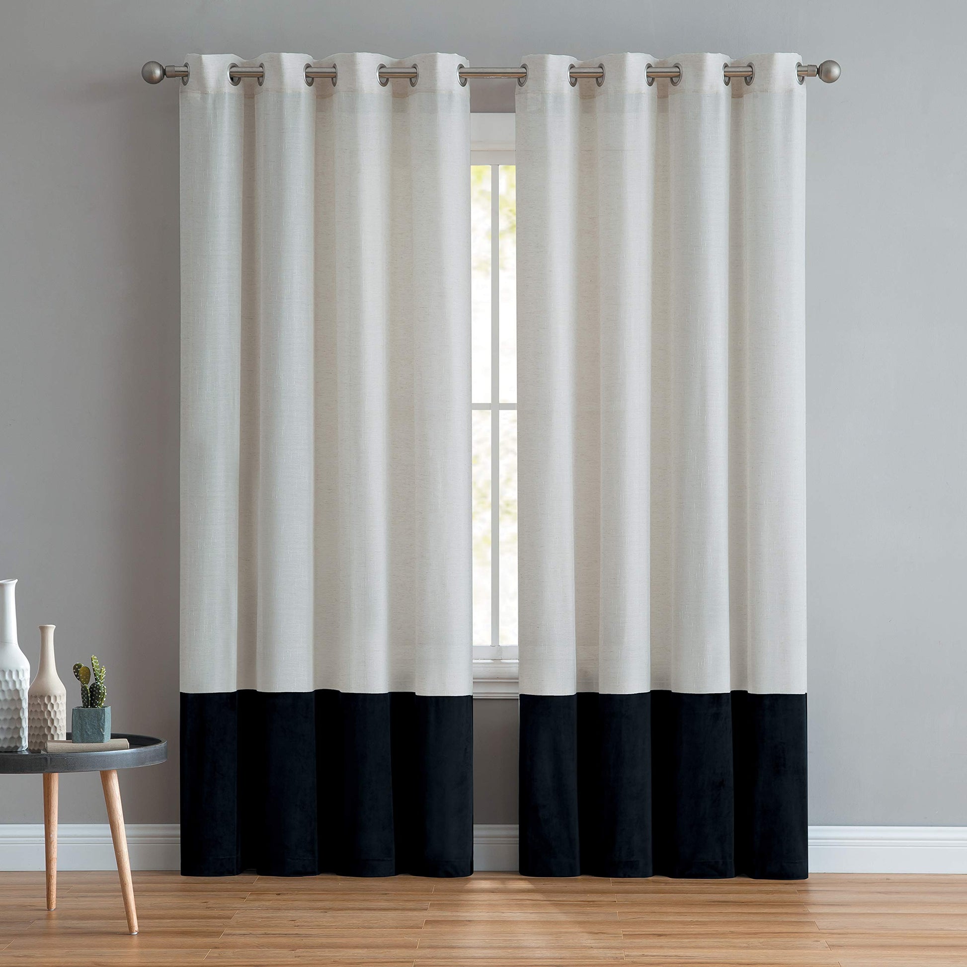 INtex CURTAINS HOUSE Luxury Linen Curtains With Velvet - Bottom Velvet Tone – 2-Tone Style – 1 Panel