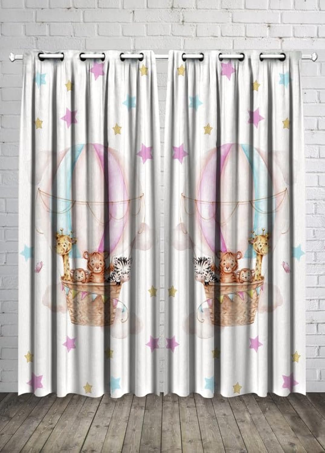 INtex CURTAINS Kids Room Balloons and Safari Animals Baby Girl Curtain -Linen Velvet Fabric -Privacy - Steel Grommets - 2 Pieces