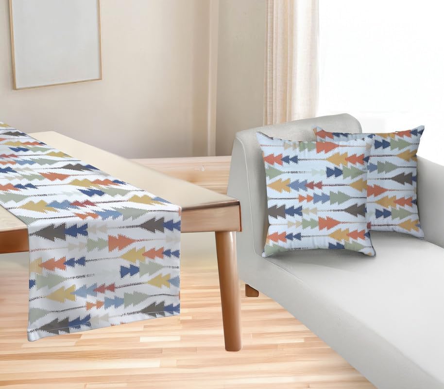 - 3-Piece Set: Includes one table runner and two matching cushion covers.